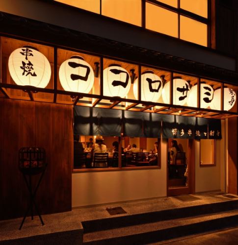7つの提灯が目印のガラス張り外観!!博多の路面店を思わせる趣のある雰囲気は気兼ねなく立ち寄れ、大勢で楽しむのも良し!カウンターでお一人で楽しむのも良し!様々なお客様にご利用いただける当店に是非お越しください!!