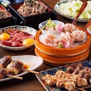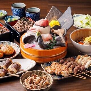 新鮮な刺身を使った刺し盛り、名物の「月見つくね」「和牛すき焼き串」の入った贅沢コースになっております。丁寧に作り上げるこだわりの逸品をお楽しみいただけます!各種ご宴会にもいかがでしょうか?